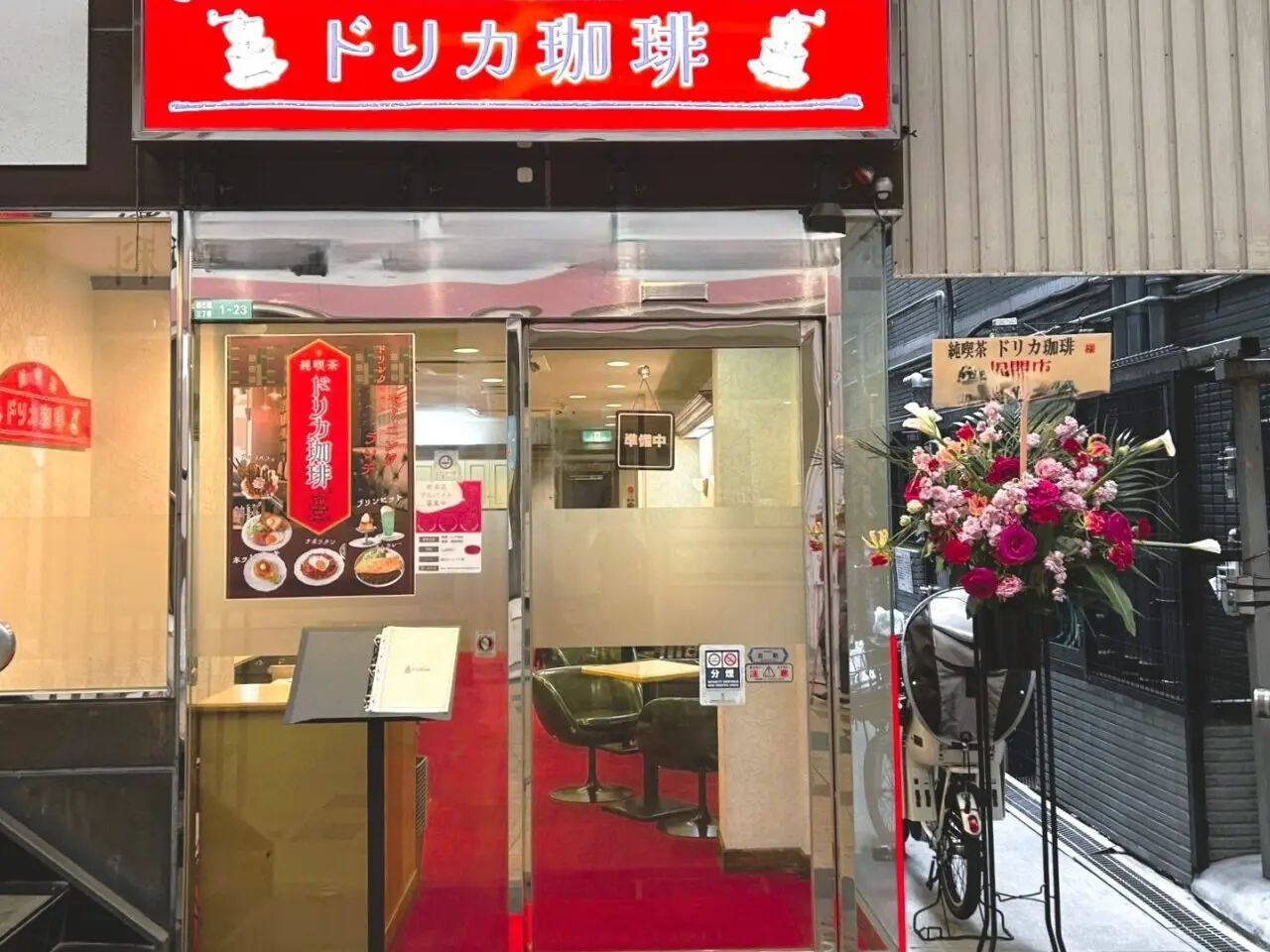 しょんべん横丁の中で開店祝いの花が飾られているお店を見つけました。