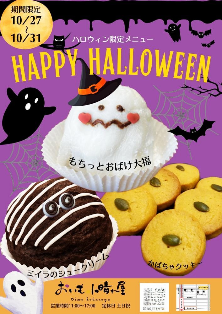 本店「お芋晴れ晴れ」のInstagramには、昨年の「ハロウィン限定メニュー」が色々載っています。今年は、どんな商品が発売されるのでしょうか。気になりますね。
