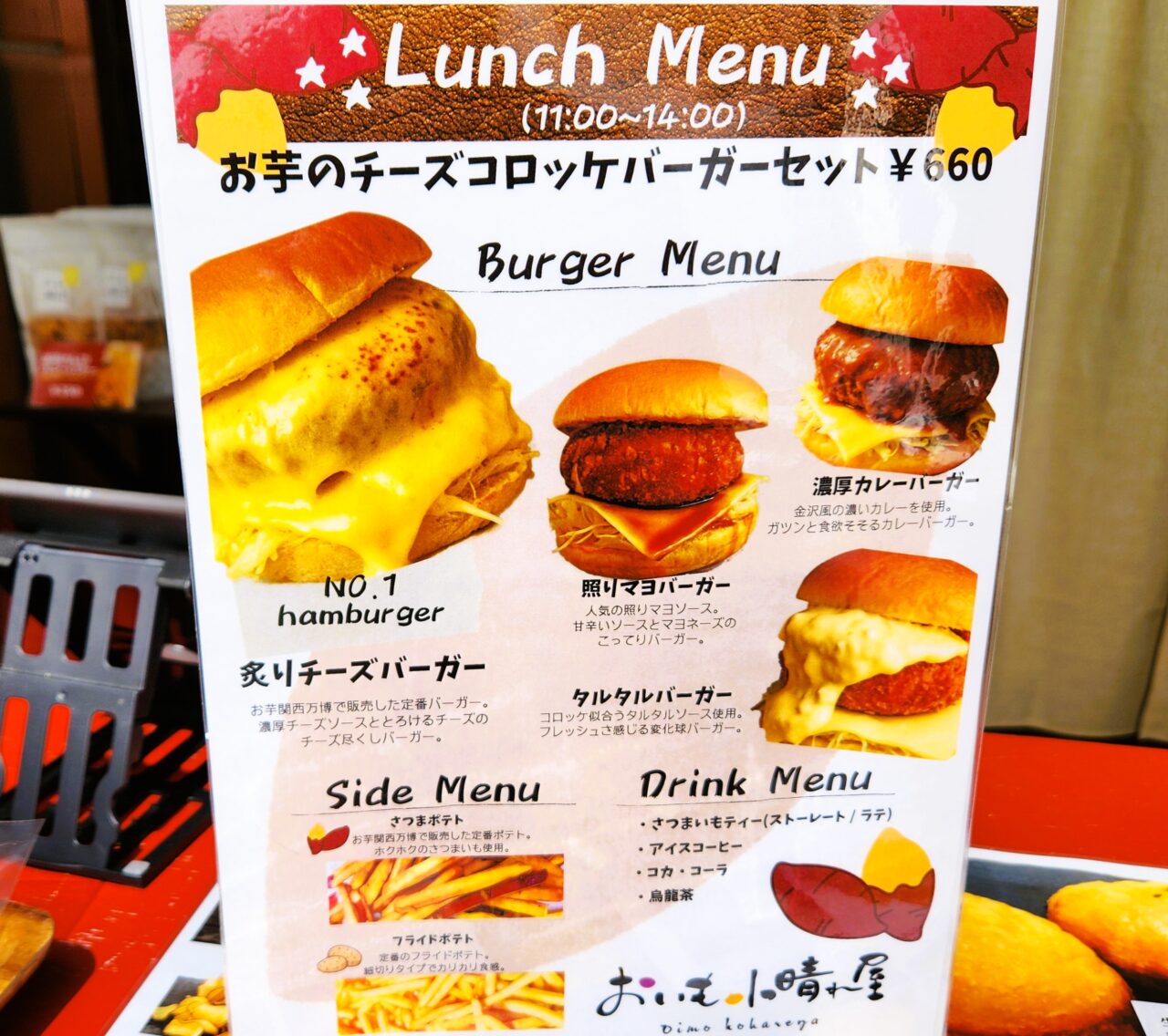 美味しくて可愛いお芋スイーツから、ランチにもなるお芋バーガーまで、多彩な美味しさに出会えるお店『おいも小晴れ屋』に是非お立ち寄りになって、お気に入りの味を選んでみてはどうでしょうか。