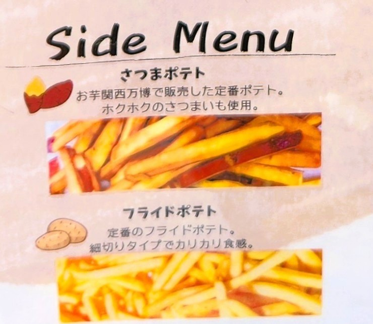 ②サイドメニューの「さつまポテト」「フライドポテト」から1つをセレクト。(非売品の特別メニュー)