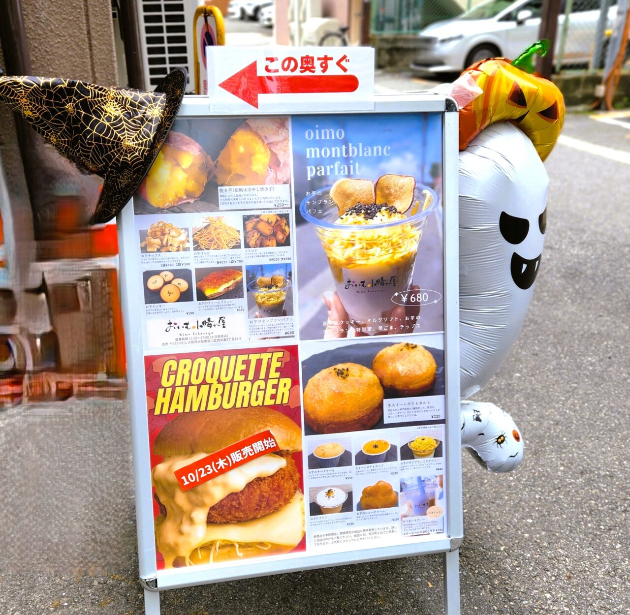 『おいも小晴れ屋』の看板は、早くもハロウィンテイストに飾られていました。