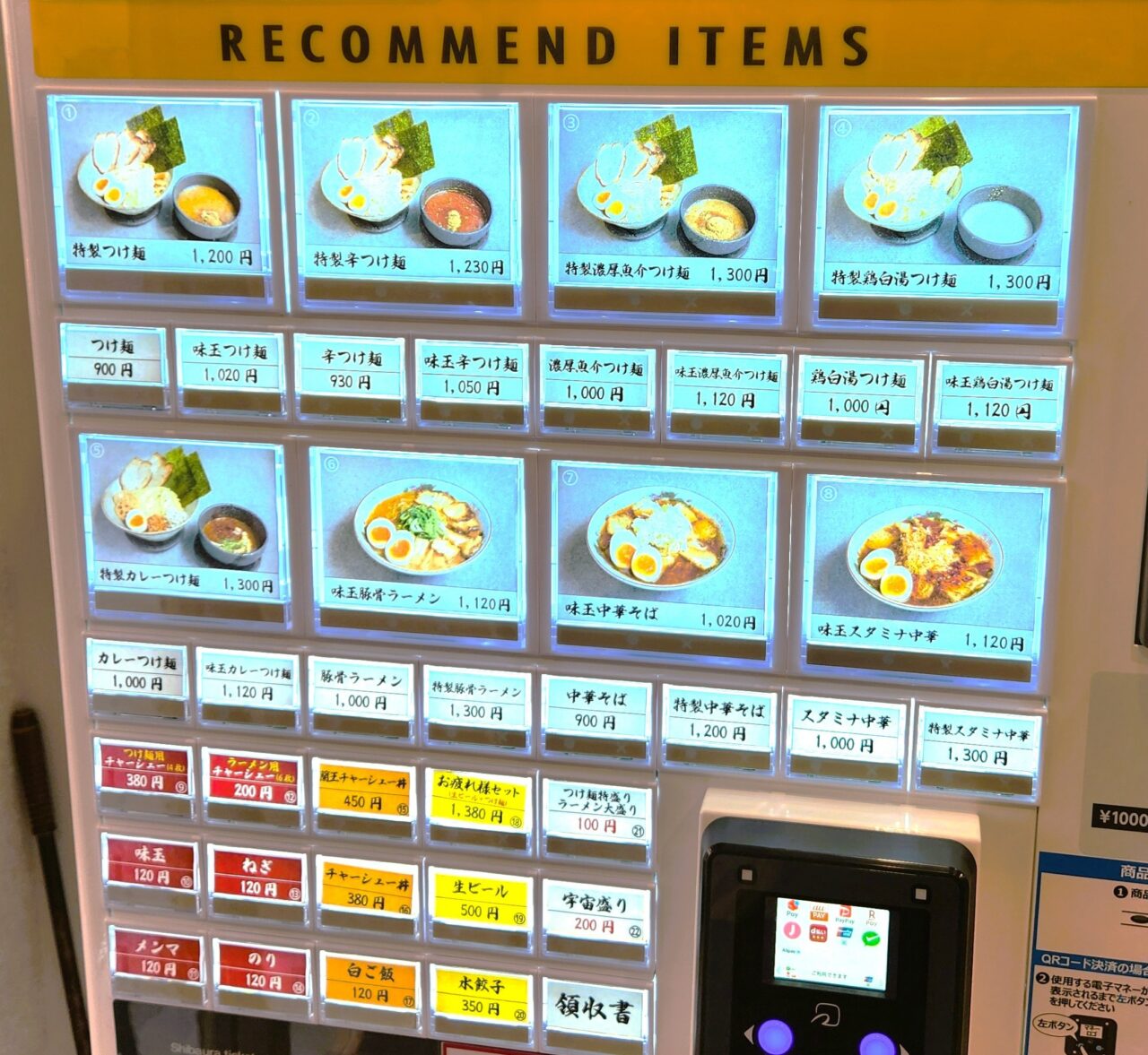 並盛りと大盛りが均一料金なのは嬉しいですね。券売機には表示がないので「オーダーの時」に聞いてくれます。お店の方によれば「自家製麺」ならではのご奉仕価格だとか。お腹が空いている時には、食券機で「特盛・大盛」「宇宙盛り」を追加で購入することも出来ますよ。