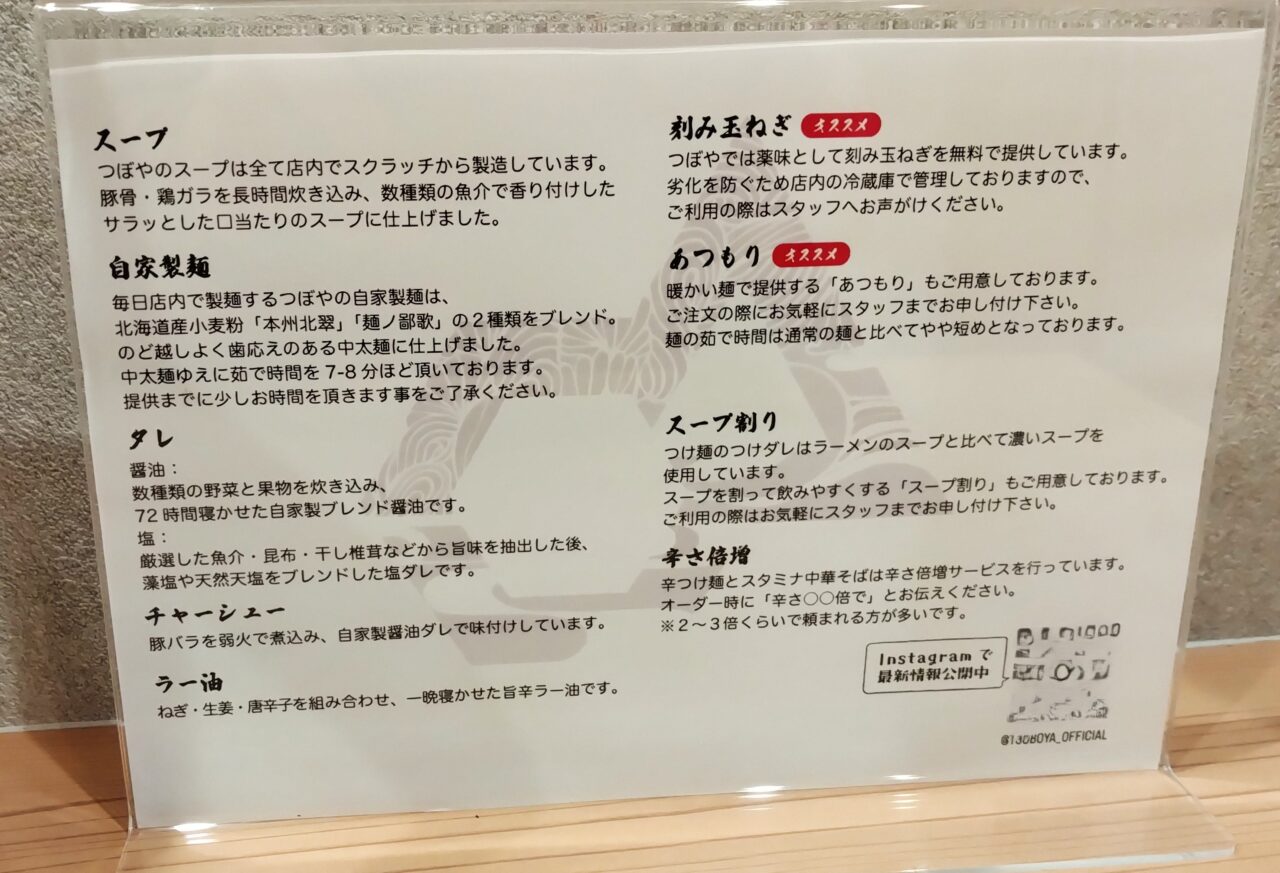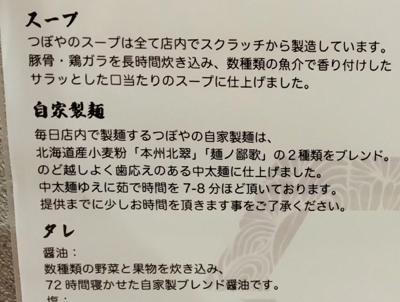 各席には、スープや自家製麺等についてのこだわりの説明がギッシリ書かれた説明が置かれていました。是非一読下さい。