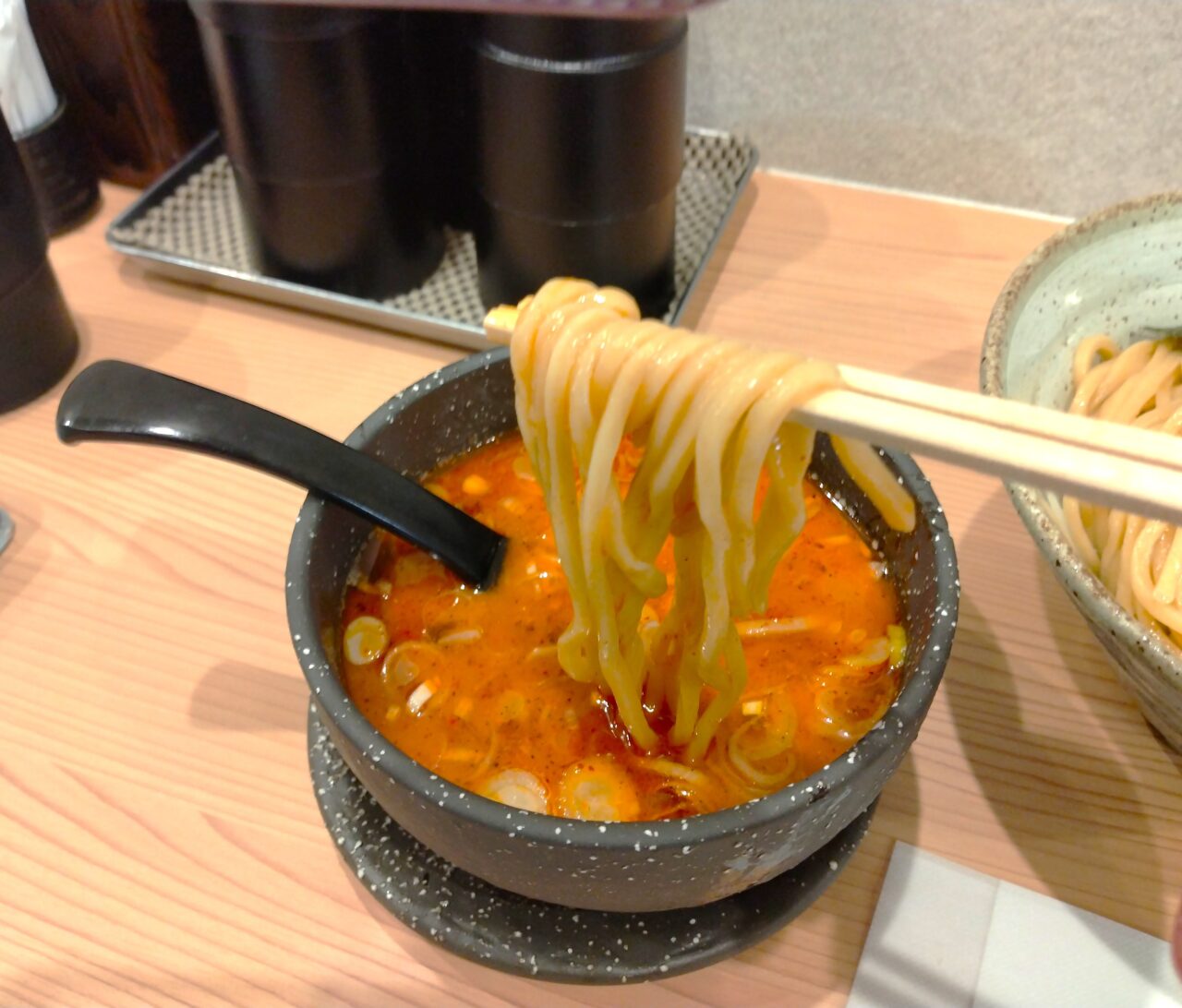 これが『つけ麺処つぼや十三店』の「辛つけ麺」です。