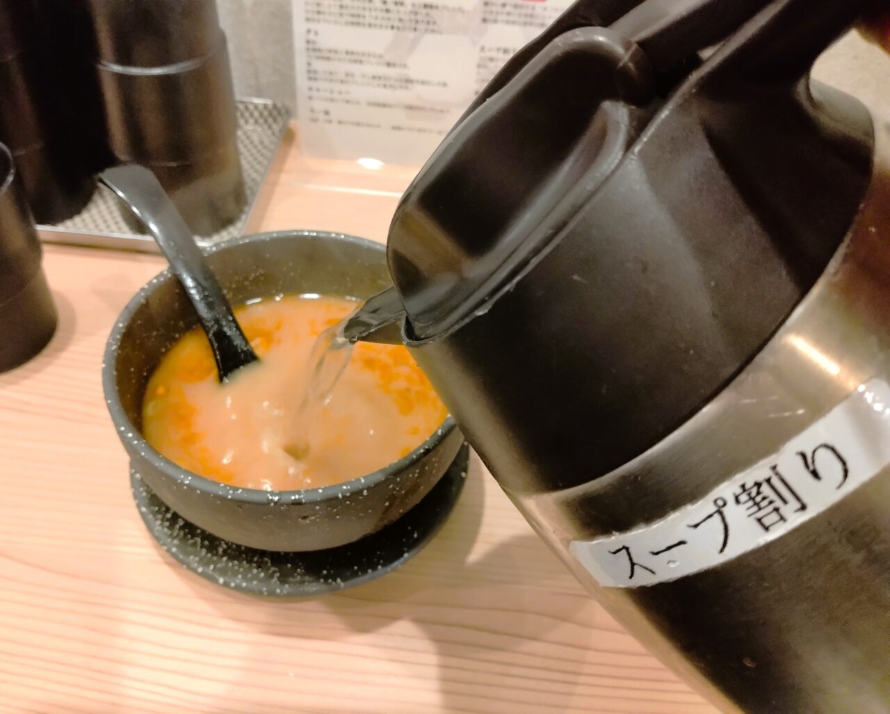 テーブルには「スープ割り」用のポットが置いてありました。試してみましょう。