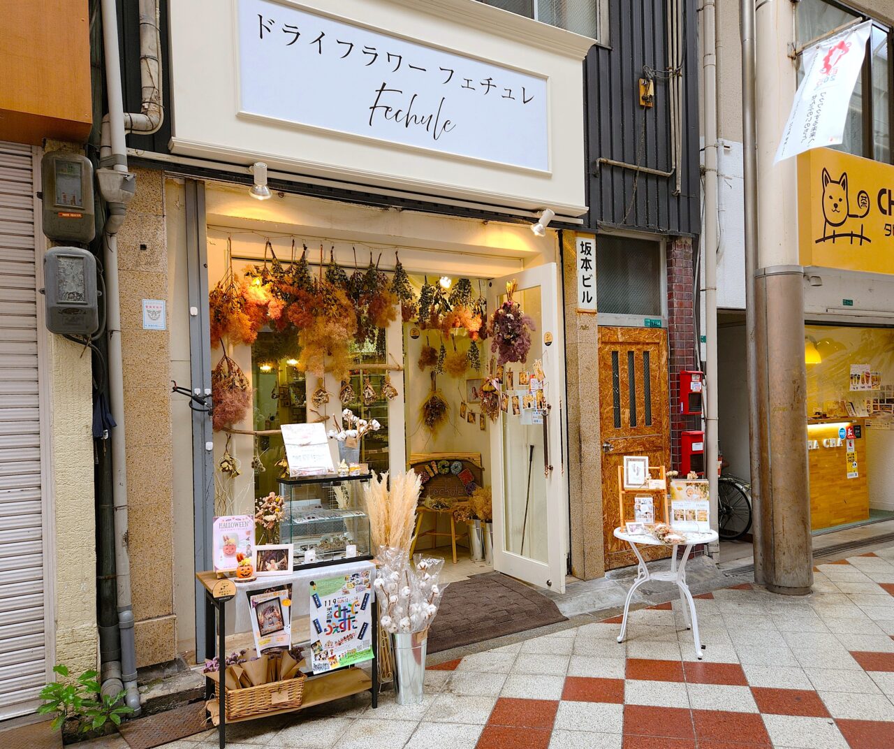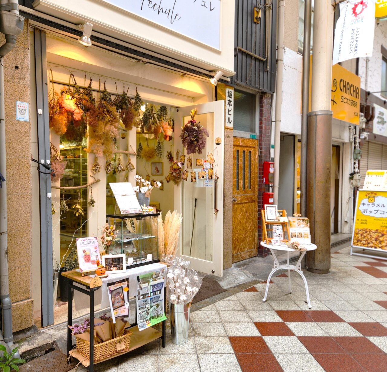 阪急電車十三駅西口から徒歩数分の「十三もといまロード商店街」に、ドライフラワー専門店『ドライフラワー フェチュレ』がオープンして人気です。実際に訪れてみました。