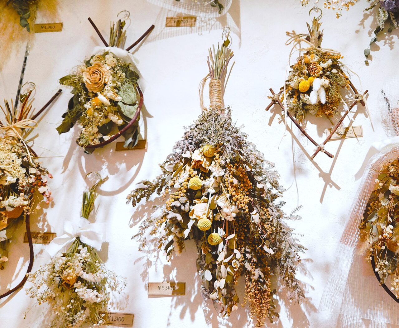 すぐ買えるレディメード品もたくさんありますが、好みや予算に応じたオリジナルのドライフラワーアイテムを作って欲しいという方も多いそうです。