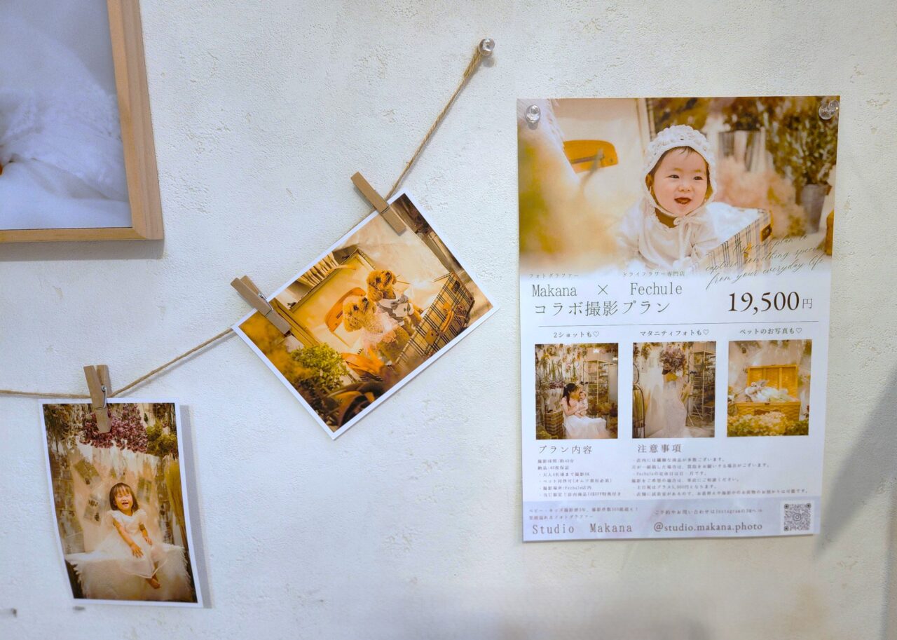 こちらは「Makana」さんとのコラボ撮影プラン。お子様やペット、家族写真等をこのプランで撮影することが出来、大好評とか。