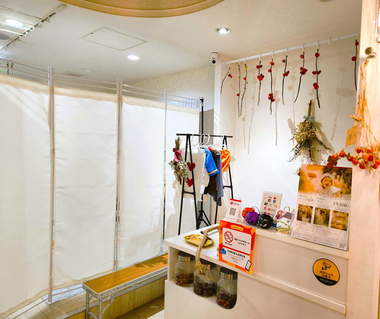 『ドライフラワー フェチュレ』には、店内奥に「記念写真撮影」「ワークshop」「ハンドメイド商品の個展」等に使用できる「ミニブース」が設けられています。