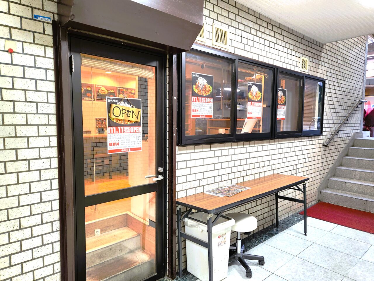 入店してみましょう。『イチャドル韓豚丼』はチサンマンション第3新大阪の地下1階にあります。地下と言っても短いステップを降りてスグです。