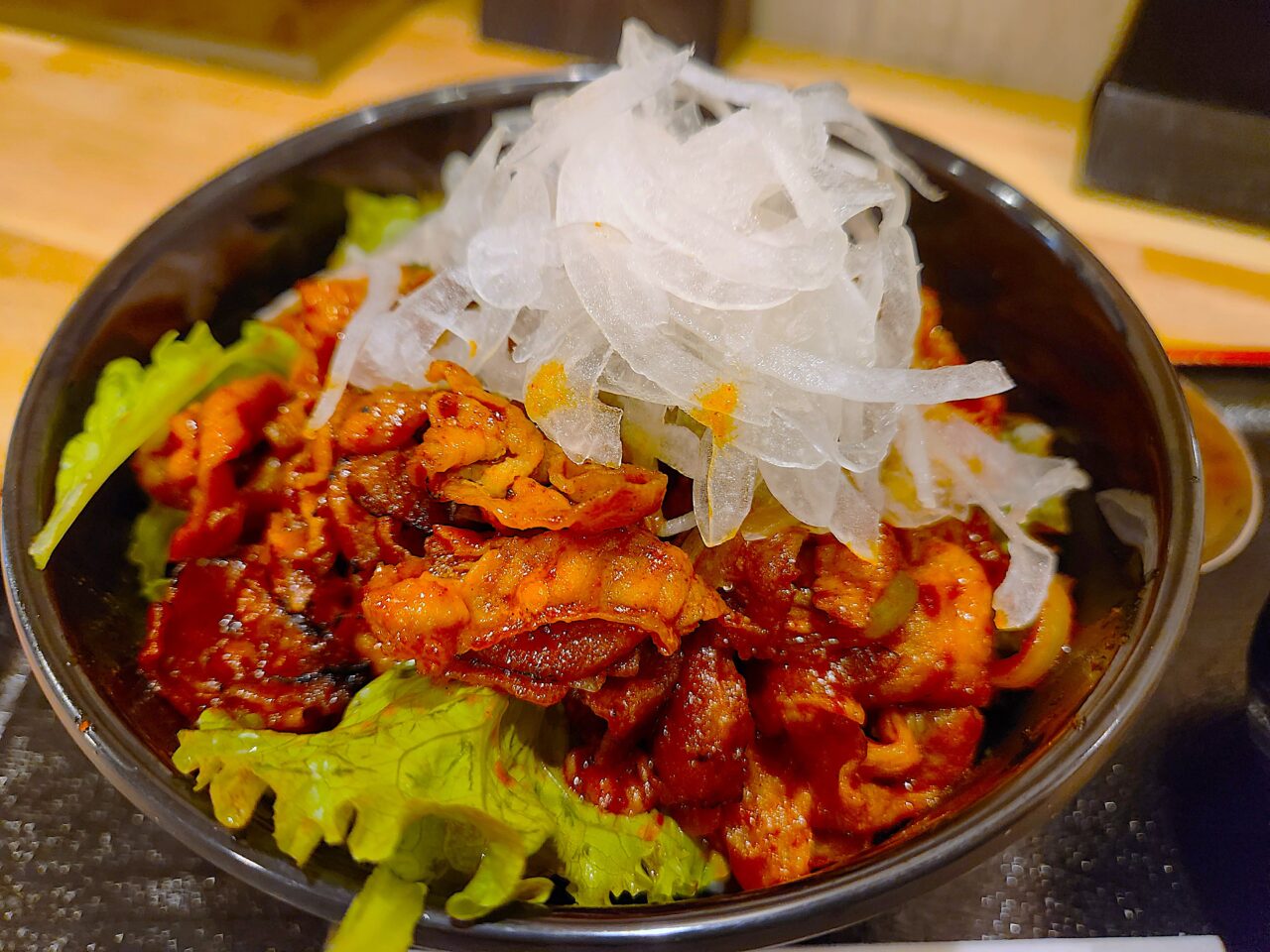 待つこと4~5分で「コチジャン豚肉炒め丼」が提供されました。