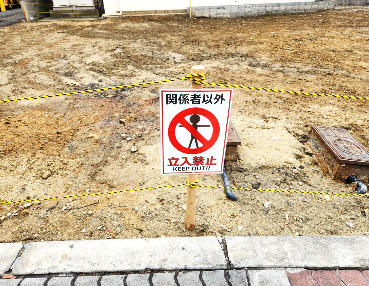 所有権者や土地の詳細等をあらわすポスター等も特にありません。「関係者以外、立入禁止」の札のみが立てられていました。