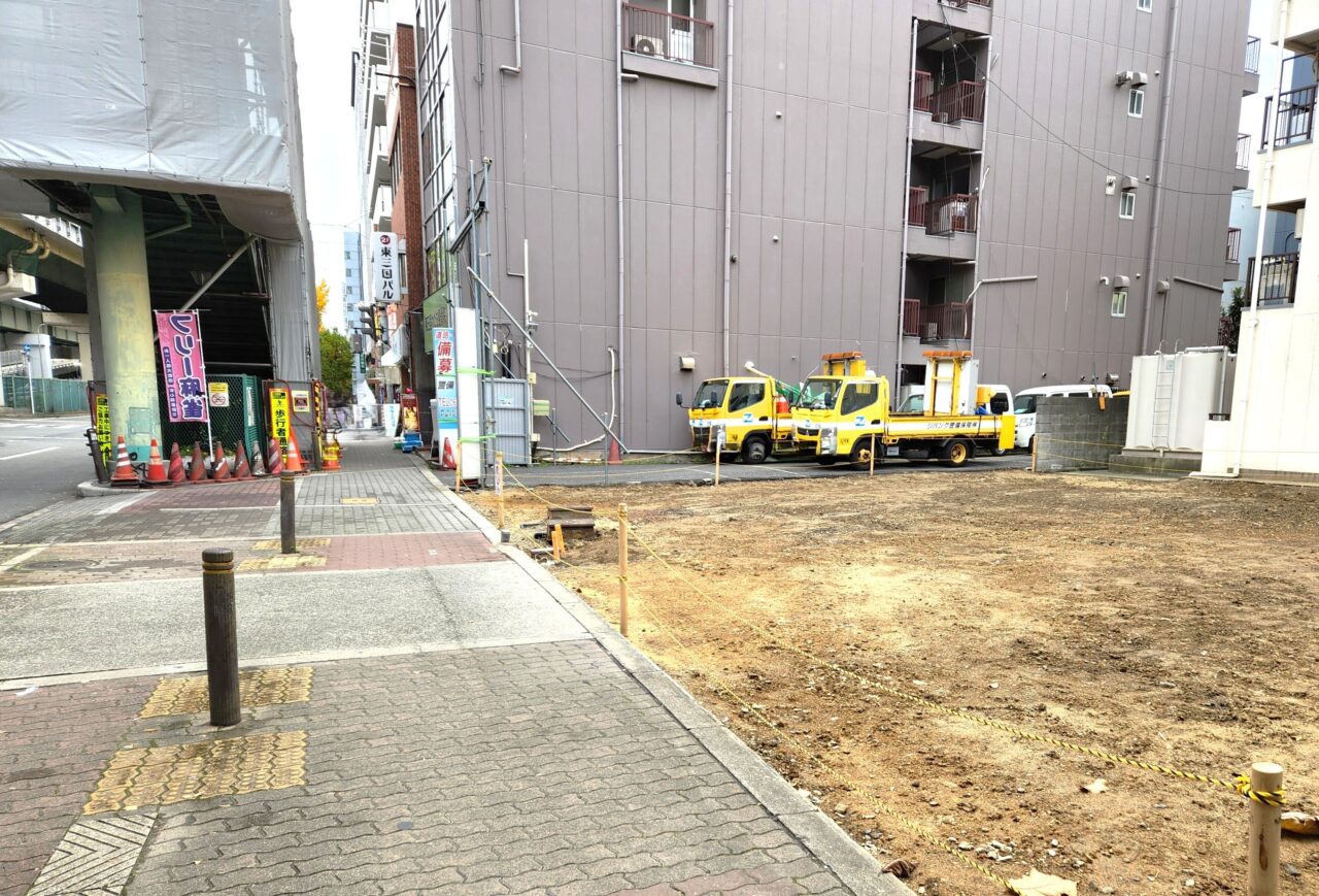 【大阪市淀川区】『宮本むなし 地下鉄東三国駅前南口店』の建物が撤去され、跡地周辺は広い更地に。今後の工事計画などは不明。近くの東三国駅5号6号出口は耐火工事中です。