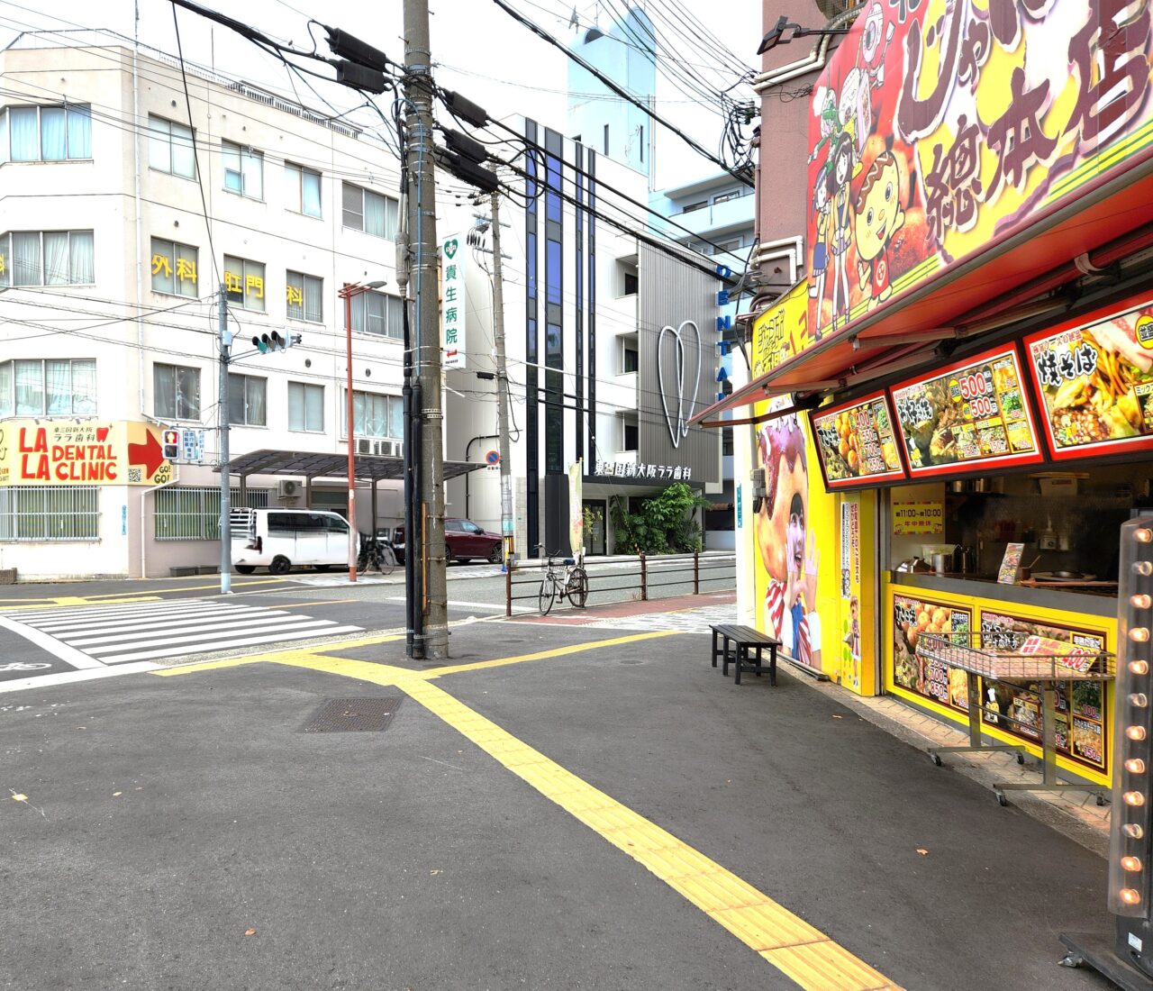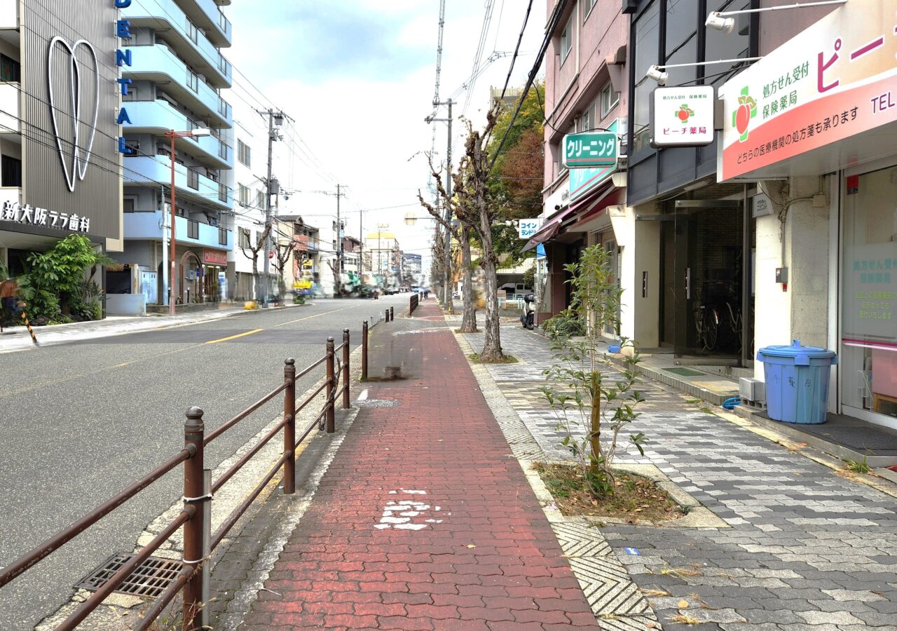 『餃子酒場リャン東三国店』へ行くには大阪メトロ御堂筋線東三国駅2号出口を出てすぐの道路「庄内新庄線」を西へ進みます。