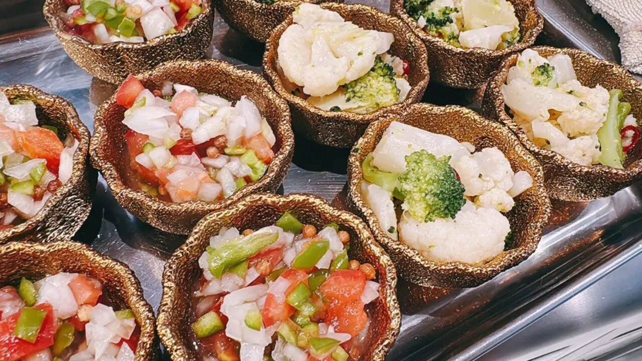 こうして、メインメニューのグルテンフリーの「牛すじのカレー」が生まれたそうです。美味しそうですね。甘口と中辛が選べます。薬味の「らっきょう」「福神漬け」「キャベツの浅漬け」の容器も大変可愛らしいですね。