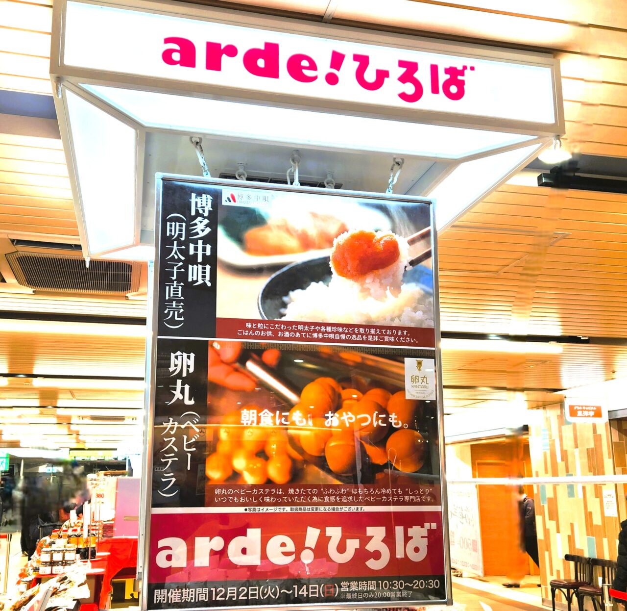 大阪の玄関口「新大阪駅」2階にあるショッピングセンター「アルデ新大阪」の催事やイベントのスペース「アルデ!ひろば」で今、期間限定ショップ『博多中唄(明太子直売)』と『卵丸(ベビーカステラ)』が開催され人気です。期間は2025年12月2日(火)~12月14日(日)迄。実際に訪れてみました。
