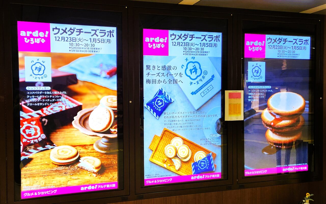 JR新大阪駅2階の「新大阪アルデひろばプラス」というミニ催事コーナーに、期間限定のスイーツshop『ウメダチーズラボ』が出店しています。「ウメダ」という名前の通り、大阪梅田発の新感覚チーズスイーツの専門店です。営業期間は、2025年12月23日(火)~2026年1月5日(月)まで。実際に訪れてみました。