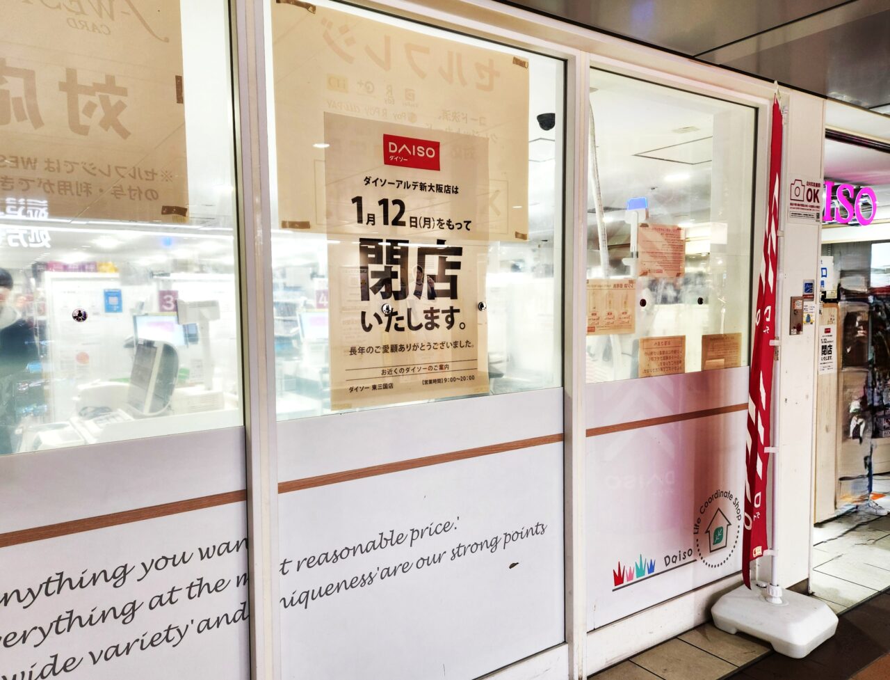 【大阪市淀川区】速報。新大阪駅2階『ダイソーアルデ新大阪店』2026年1月12日(月・祝)に閉店。