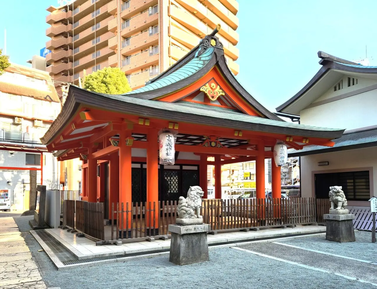 こちらは境内の東部分にある「十三戎神社」です。ホームページによれば「当氏子区域内の商工業が益々発展するように今宮戎神社の御分霊をいただいて奉斎したもの」とのこと。下記のような詳しい解説も載っています。