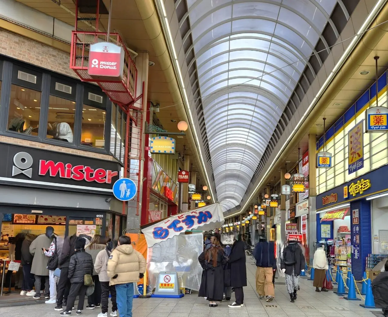 「神津神社」へ行くには、阪急電車十三駅東口を出た目の前にある「十三駅前通商店街」のアーケードを進みます。