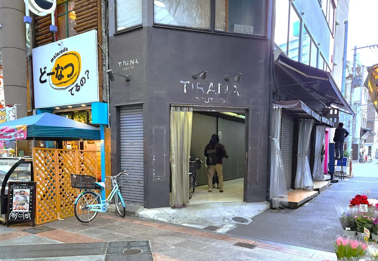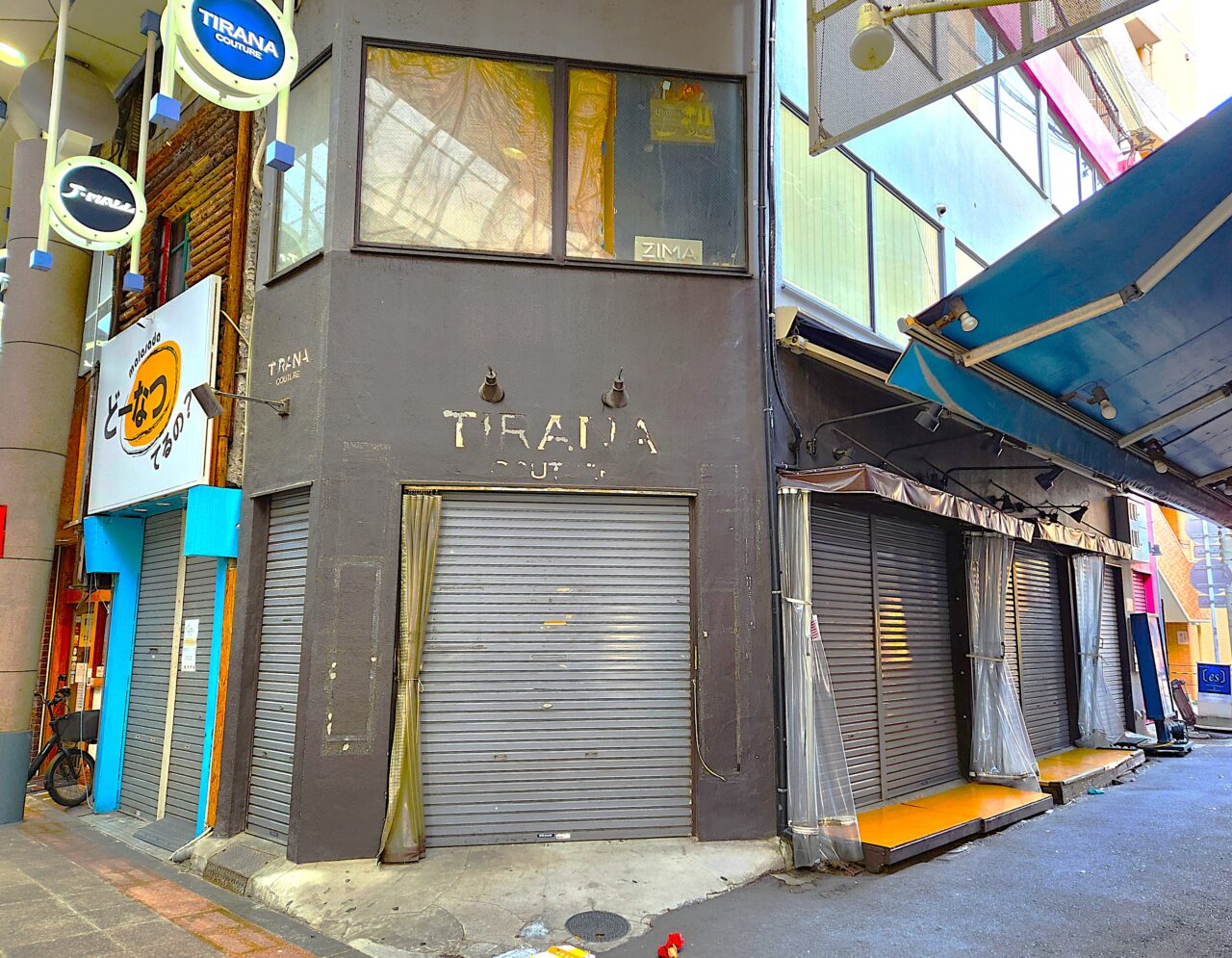 実は商店街を折り返して戻って来ると『TIRANA COUTURE 十三店』の空き店舗のシャッターが上がっているのを偶然目撃しました。