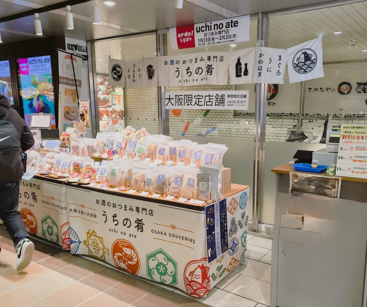JR新大阪駅2階の「新大阪アルデひろばプラス」というミニ催事コーナーに、ちょっと誰かにおすすめしたくなるおつまみ専門店『uchi no ate(うちの肴)』が期間限定出店しています。営業期間は、2026年1月23日(金)~2月2日(月)まで。実際に訪れてみました。