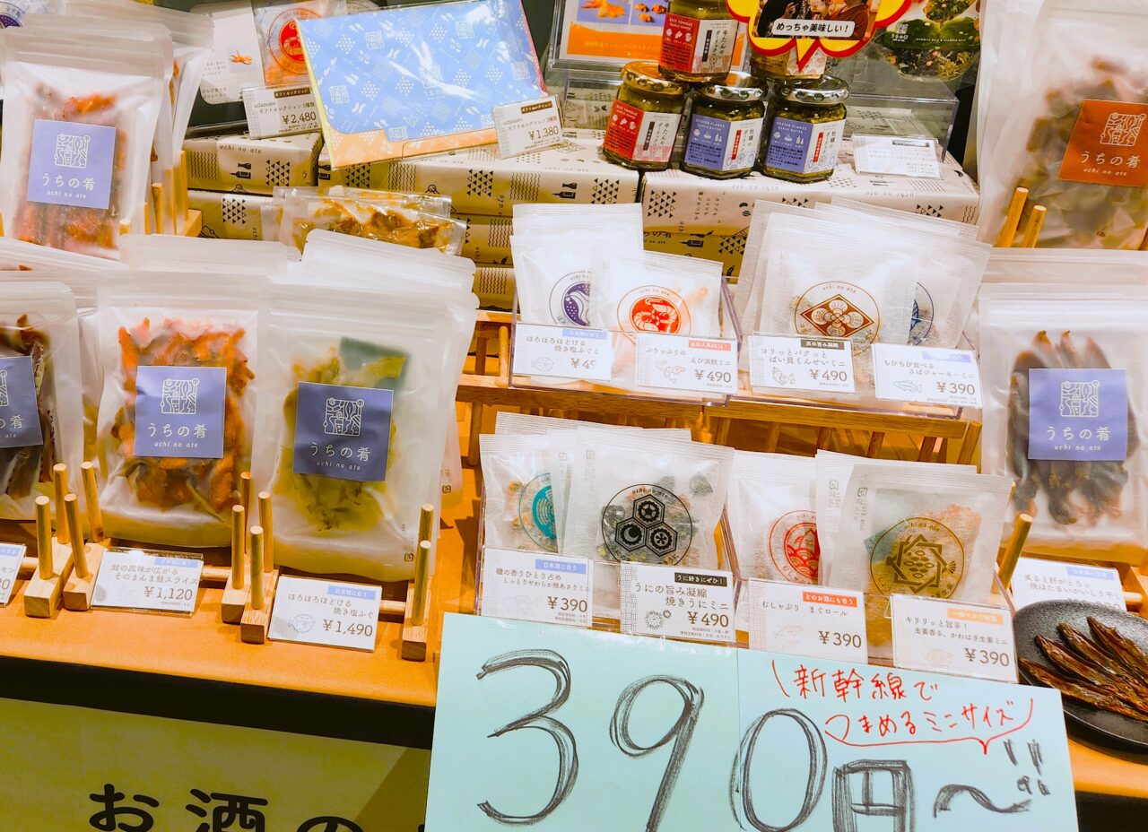 今回の期間限定ショップは手に取って『uchi no ate(うちの肴)』のお気に入りを買える格好の機会です。通勤・通学の途中や、移動のスキマ時間にサッと立ち寄れる便利な場所のイベントです。プレゼントやお土産にもおススメ。是非一度お立ち寄りになってみてはどうでしょうか。