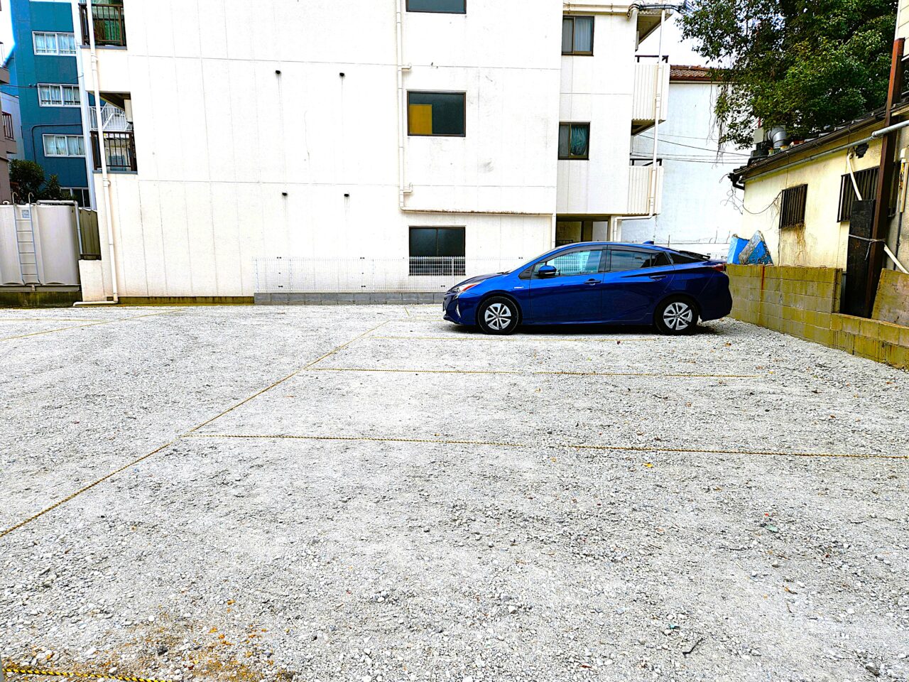 コンクリートやアスファルトの舗装はされていませんが、きれいにならされた土地にはロープで駐車区画が区分けされています。数えてみると9台分になっていました。