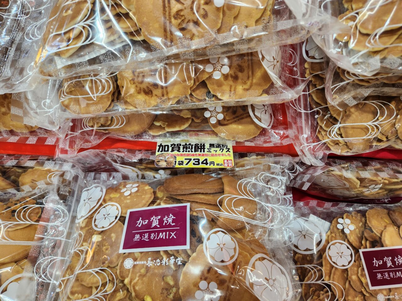 ご自宅のお茶請けにおススメの5種が入った「無選別ミックス加賀焼せんべい」。