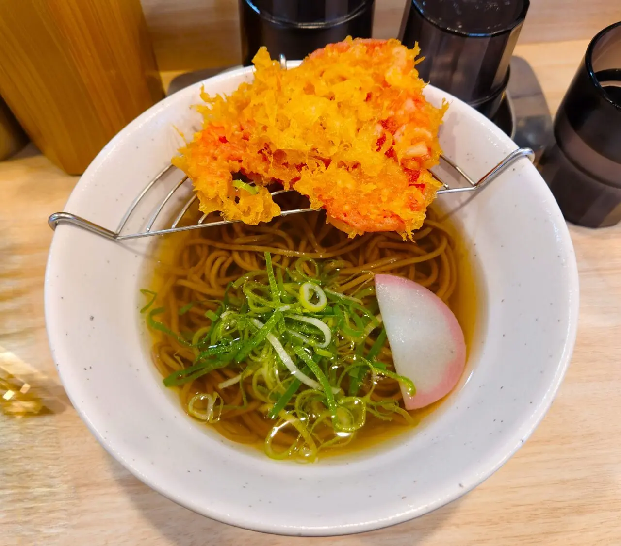 高級料理店や天ぷら専門店なら当たり前かもしれませんが、庶民的な立ち食いうどん&そば店で、このこだわり。「揚げたてを美味しく食べてもらいたいので」ということです。そして味わった紅生姜天は今まで食べたことのない程、香ばしくカリッとしていました。お蕎麦のお出汁も濃くも薄くもない程よいコクが感じられました。サクッと食べやすい立ち食いにぴったりのお蕎麦でした。次回は、うどんや細うどんを試してみたいですね。美味しかったです。ご馳走様でした。