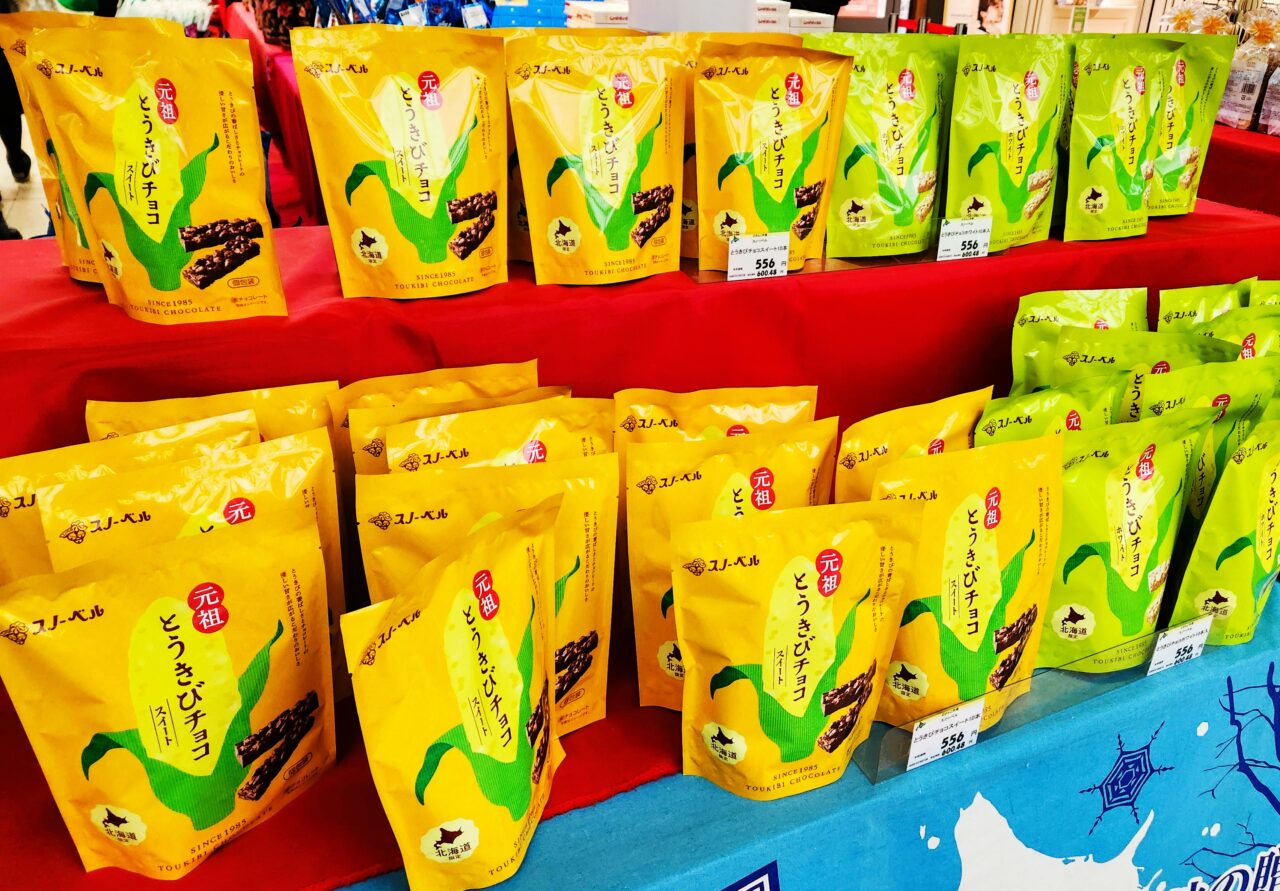 多彩なラインアップのとうもろこしのお菓子もあります。こちらは「とうきびチョコ」。
