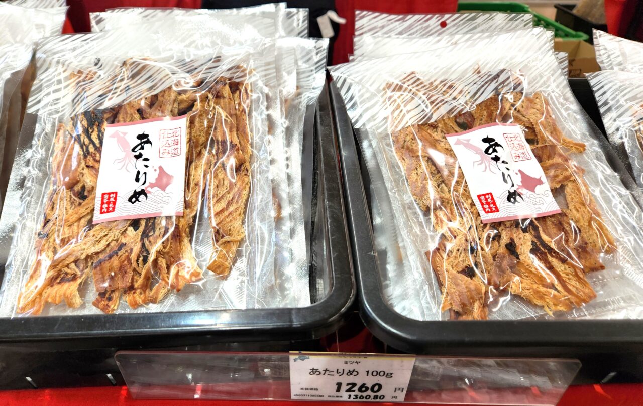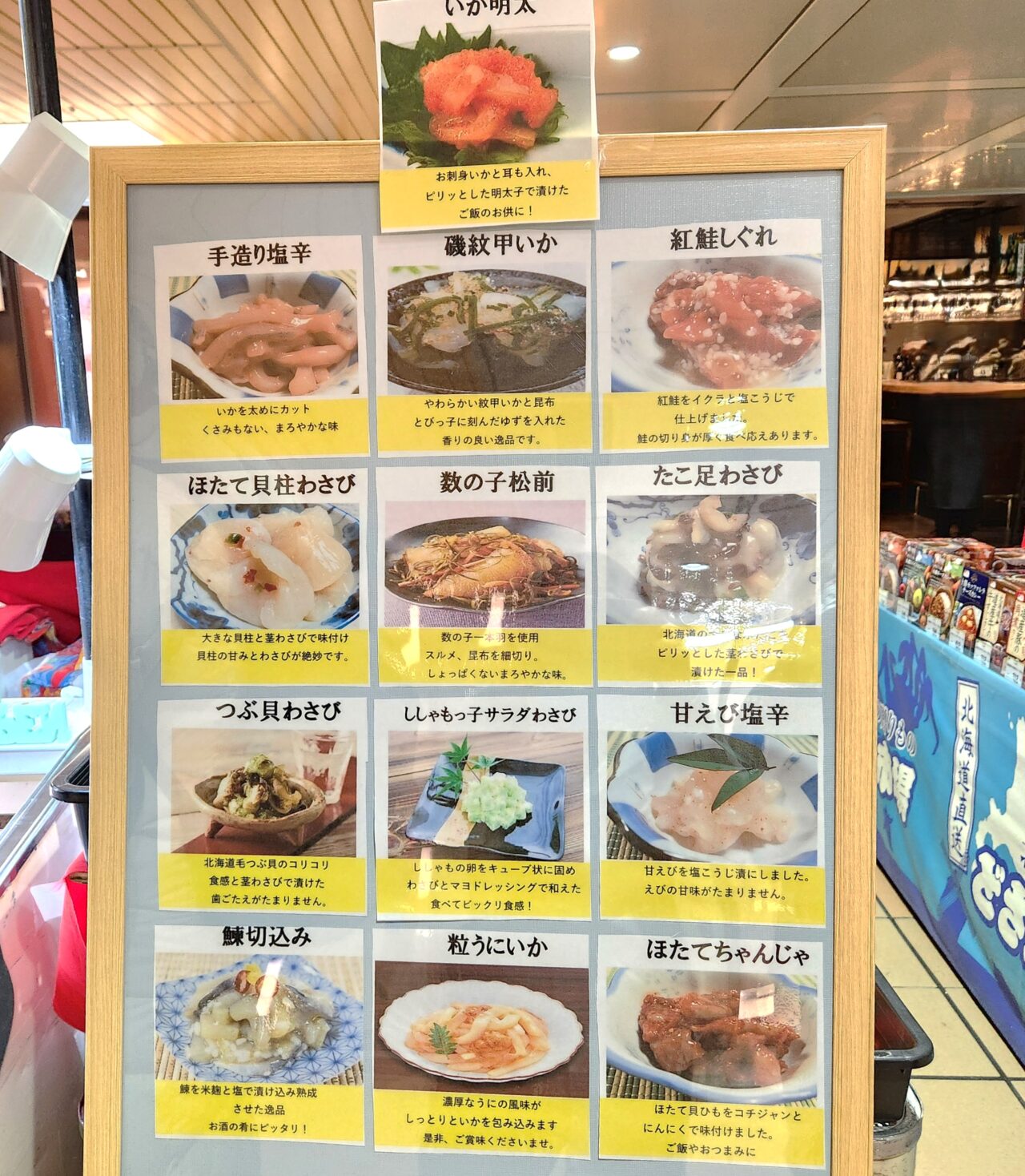 北海道の海で獲れた海産物を使用した商品のコーナーには、多くのお客様が並んでいました。お惣菜や酒の肴にぴったりのものばかり。