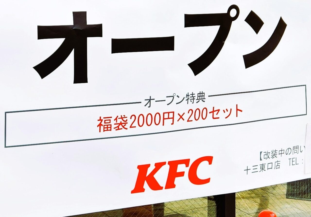【大阪市淀川区】速報。阪急十三駅前『ケンタッキーフライドチキン十三東口店』が4月16日(木)リニューアルオープン♪オープン特典は「福袋2,000円×200セット」。