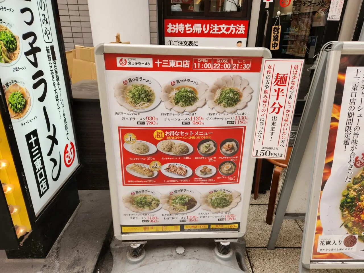 老舗ラーメンブランド「宮っ子ラーメン」の各店の中でも「宮っ子ラーメン十三東口店」は駅近で大変便利な場所にあるお店です。